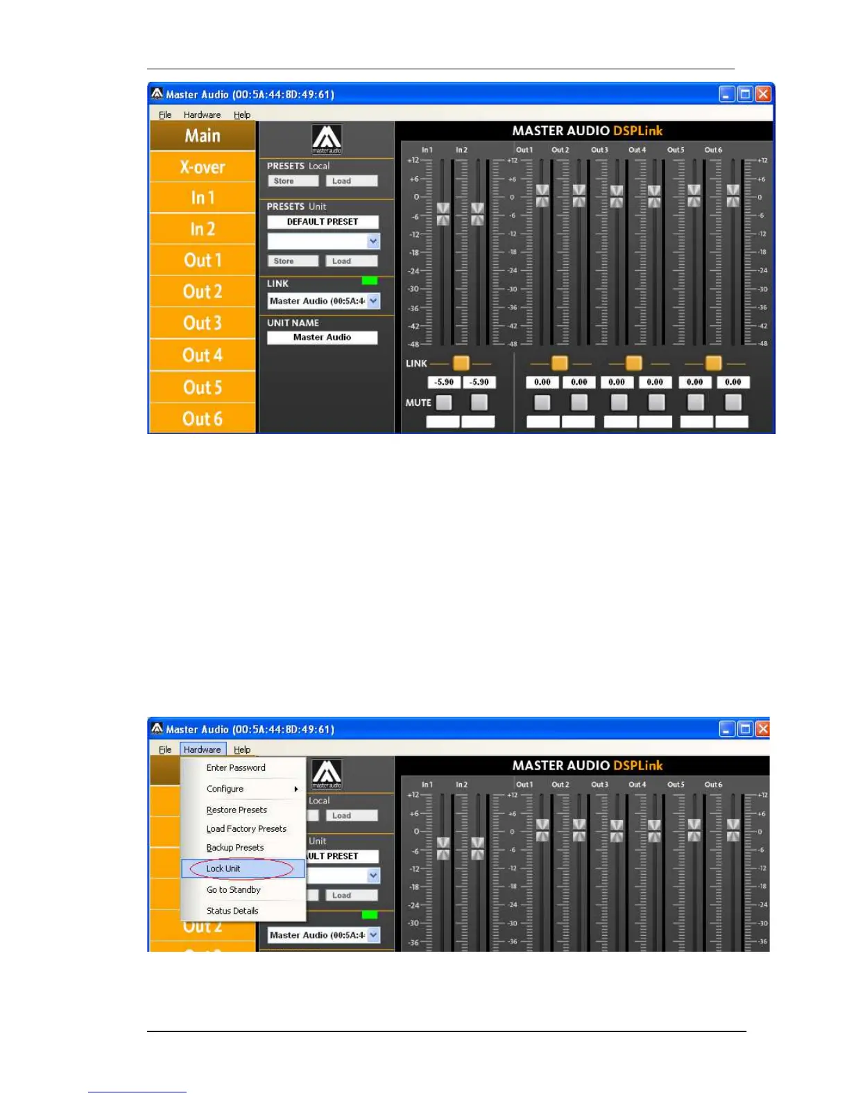 In order to lock the unit by password, select “Hardware > Lock Unit”.