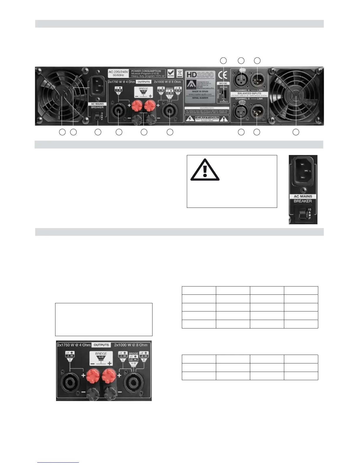 Para el modo BRIDGE, utilizar el Speakon A o los Bornes, con la siguiente