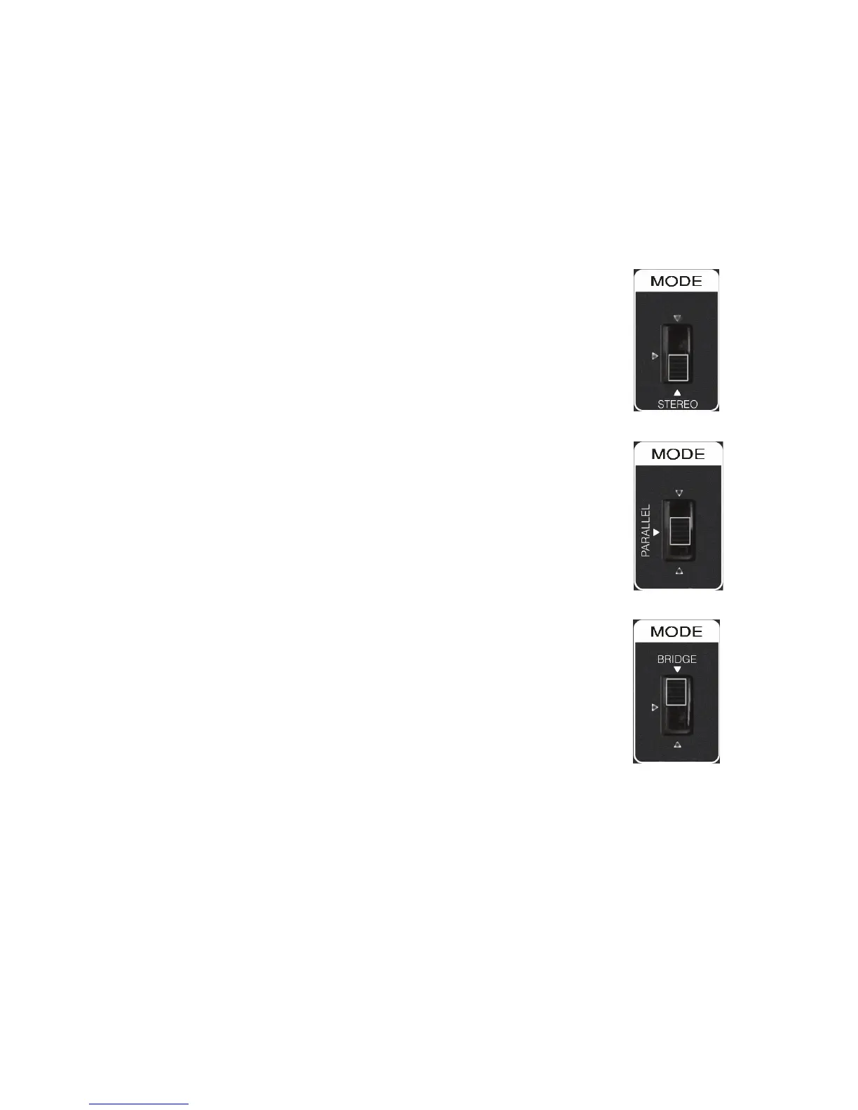 To use MONO mode, place the MODE selector switch in BRIDGE position (Up). The