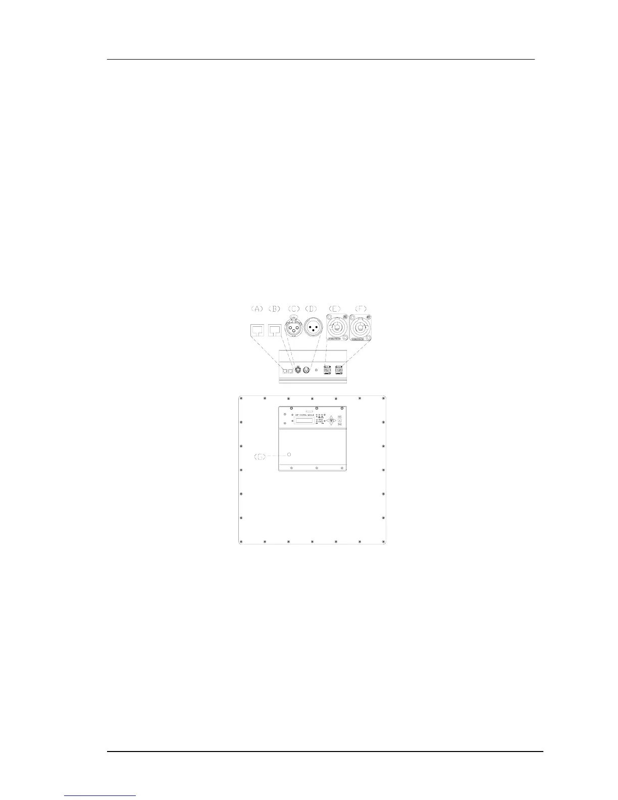 F) AC STACKING OUTPUT : PowerCon Output connector to feed a secondary