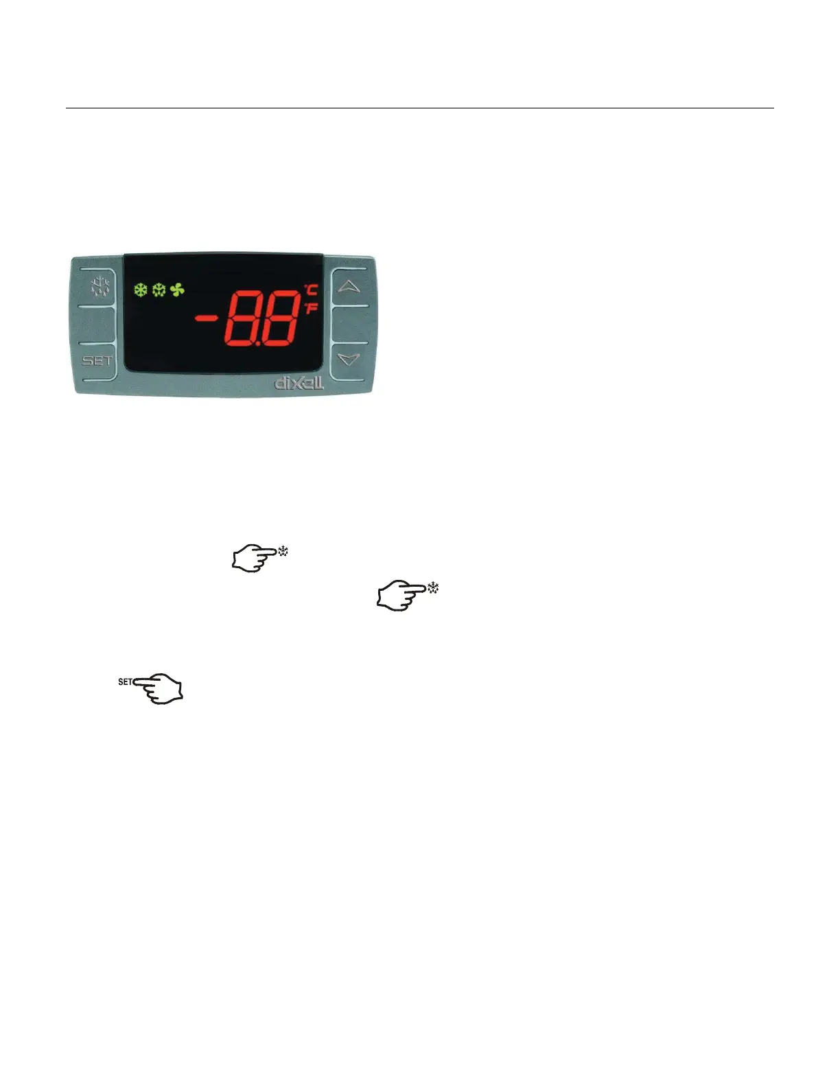 point. The compressor(s) and fan(s) icon will then be of until the cabinet temperature rises above set point +7°F. A defrost with the