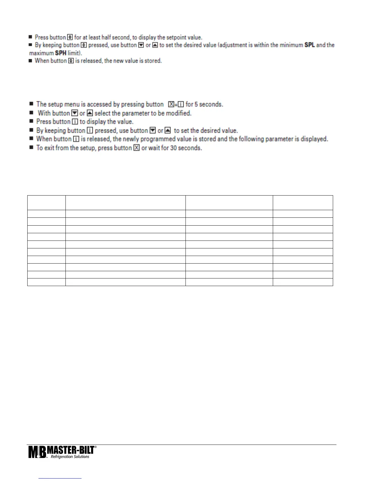 Here is a list of the parameters the value of which can be changed in the programming mode, as well as their ranges.