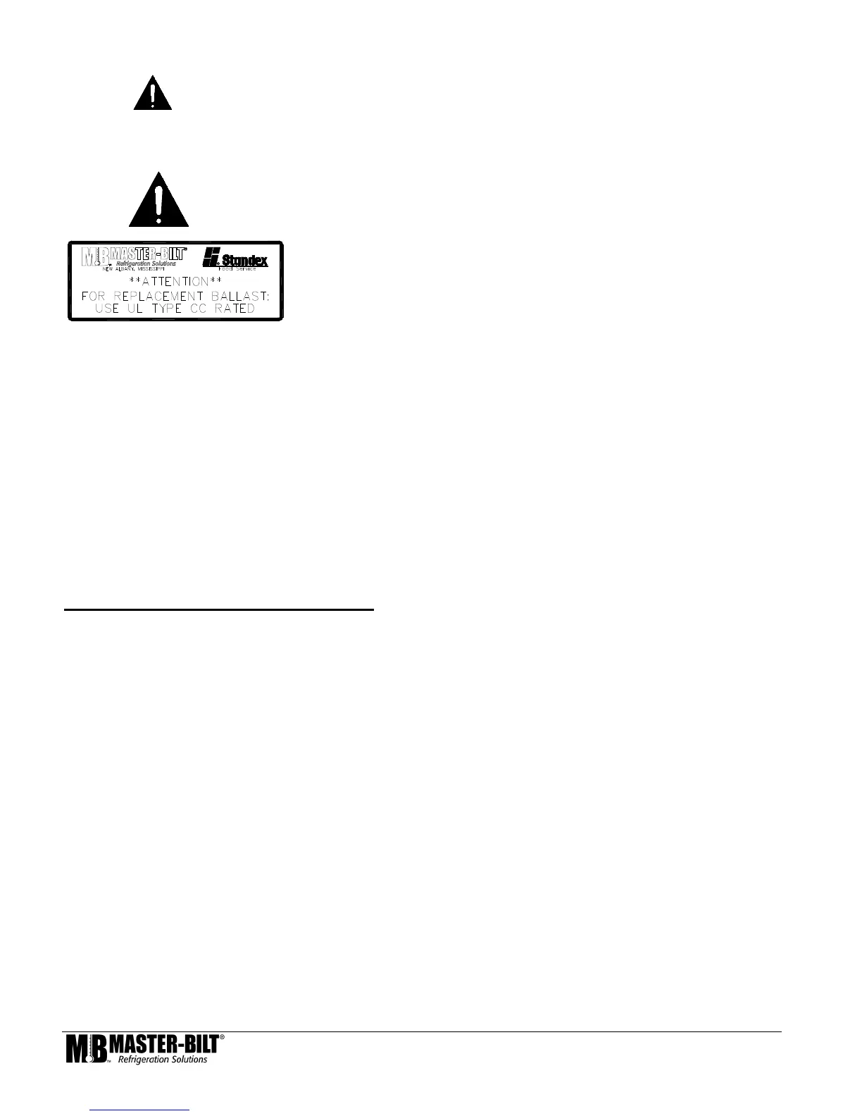 For replacement ballast, use only ballast that complies with UL Type CC rating if unit is equipped with