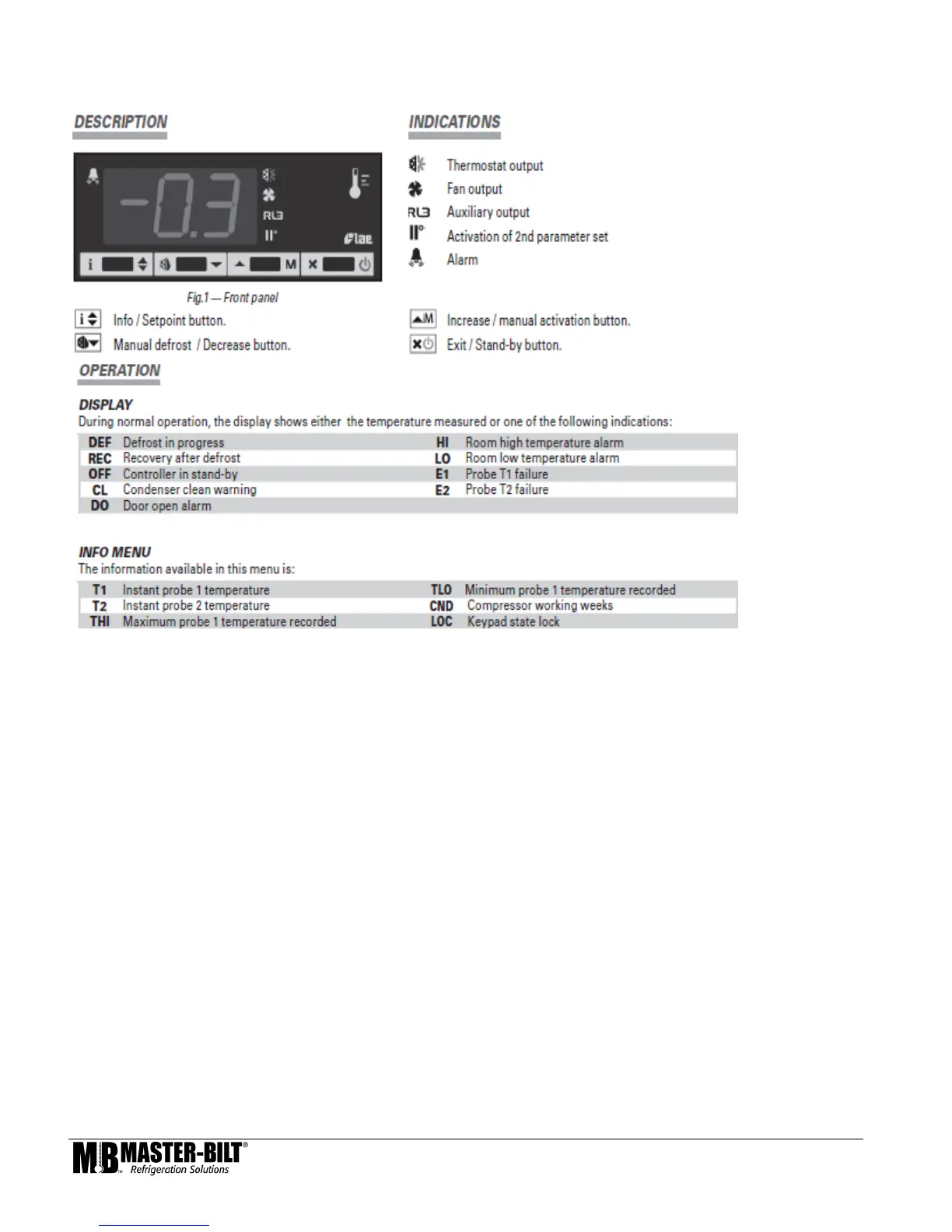 MASTER-BILT ELECTRONIC REFRIGERATION CONTROL