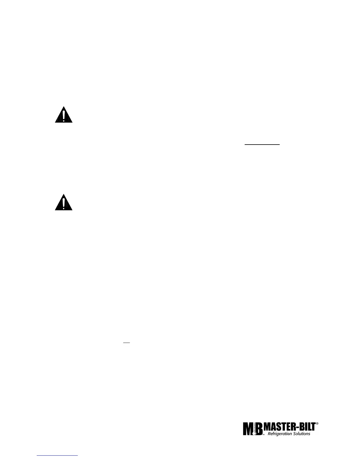 If moisture or liquid is observed around or under a Master-Bilt cabinet, an immediate investigation should be