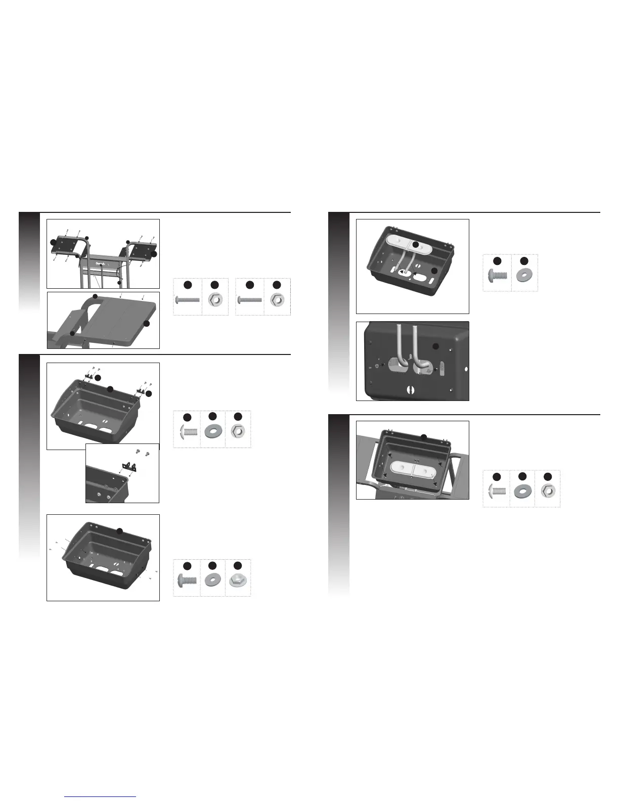 b. Assemble a side shelf (EA) to the right cart legs