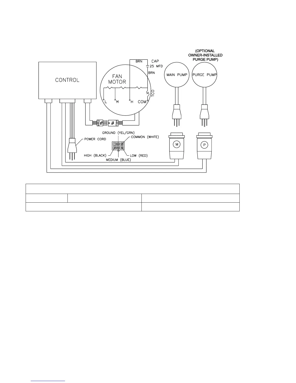 In addition to the standard water pump to recirculate water from the reservoir, a purge pump can be installed to