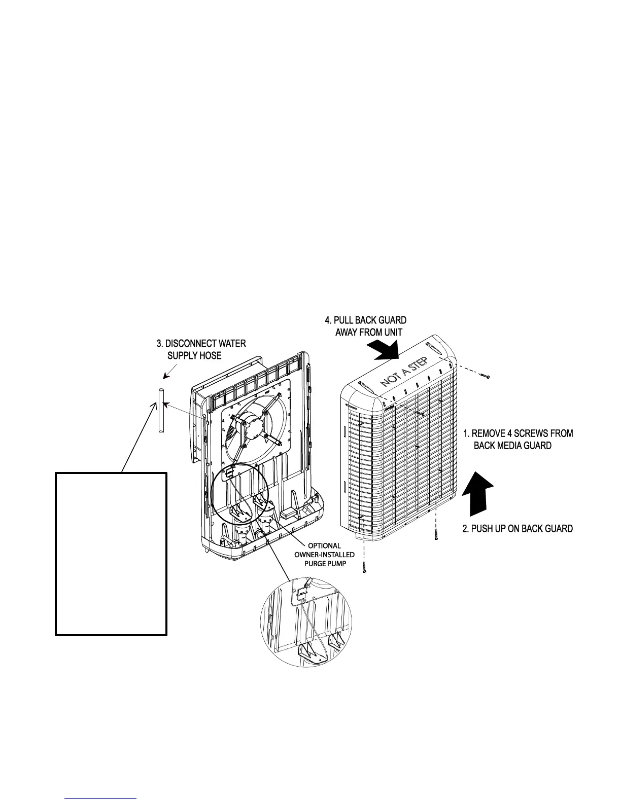 sides of media pads. Look for blockage, mineral build-up or mildew growth, breakage