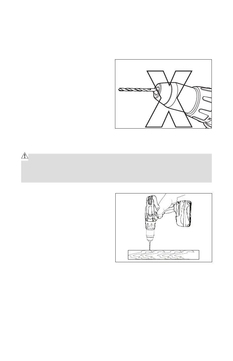 WARNING! Make sure to insert the drill bit straight into the chuck jaws. Do