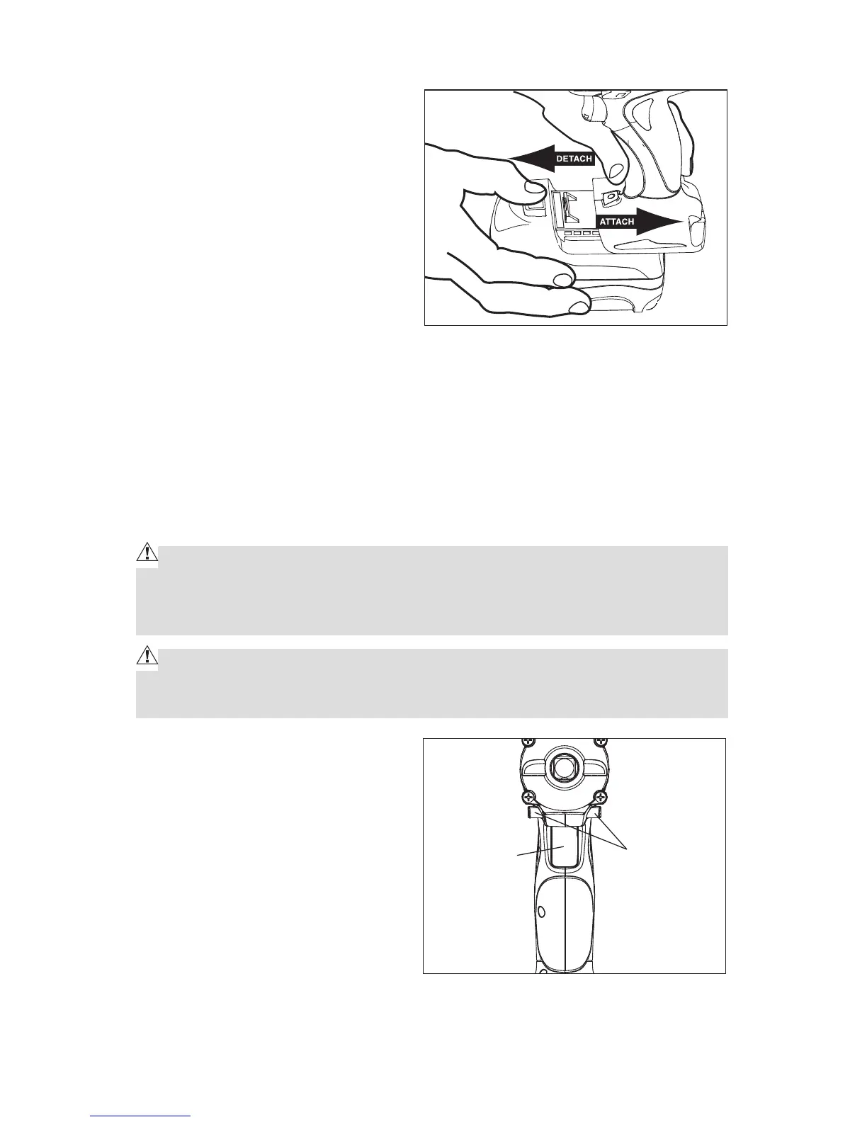 CAUTION! when placing the battery pack in the tool, be sure that the raised
