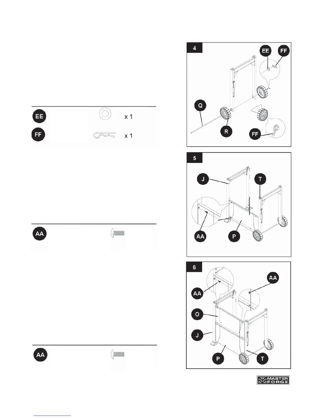 A. Fije el panel inferior frontal del carro (P) al