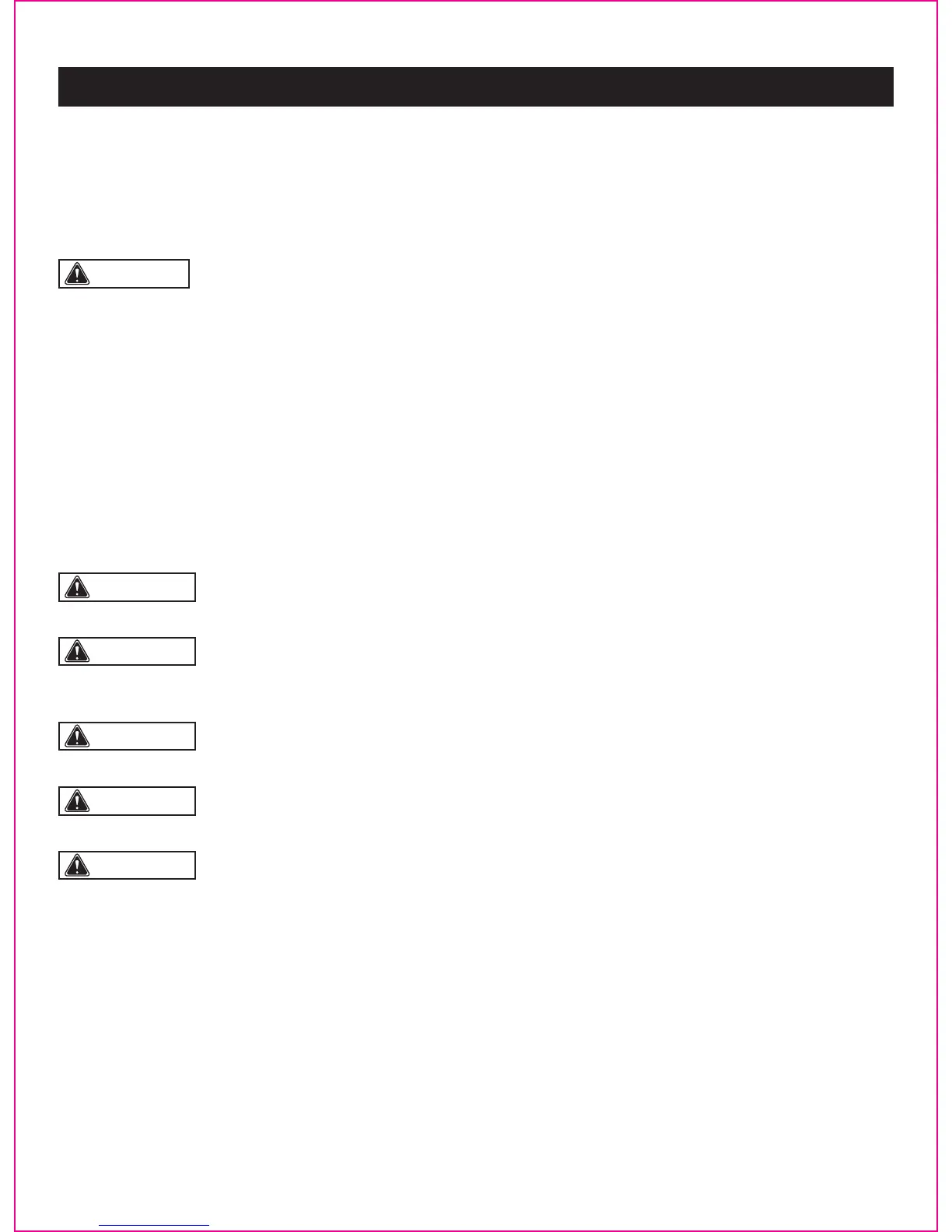 WARNING: The use of attachments or accessories not listed in this manual might be hazardous and could cause
