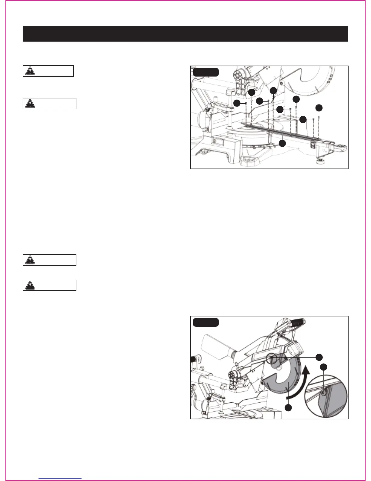 hex bolt from securing the blade on the arbor. Either of these situations could result in a serious accident and can cause