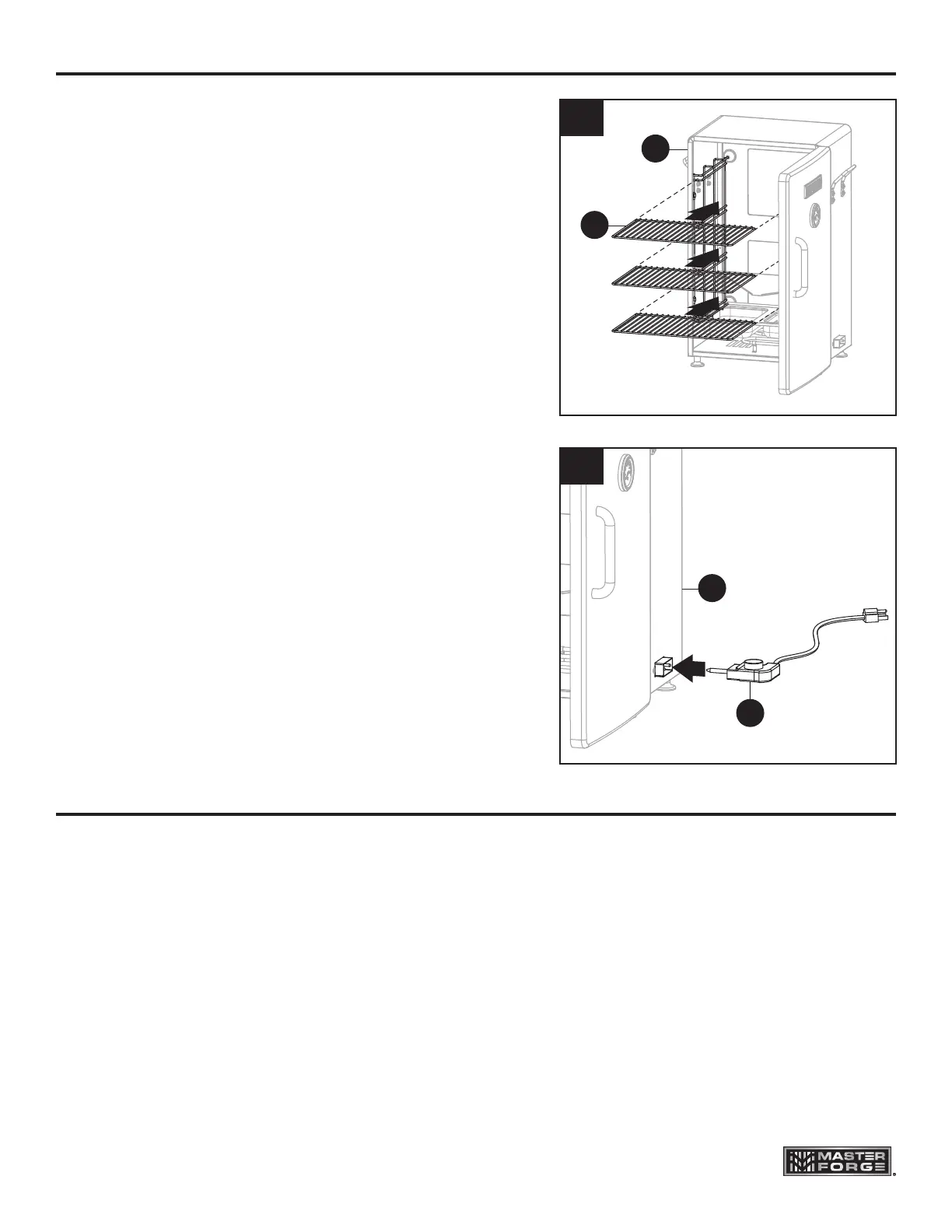 6. Coloque cada rejilla de ahumado (A) en su lugar
