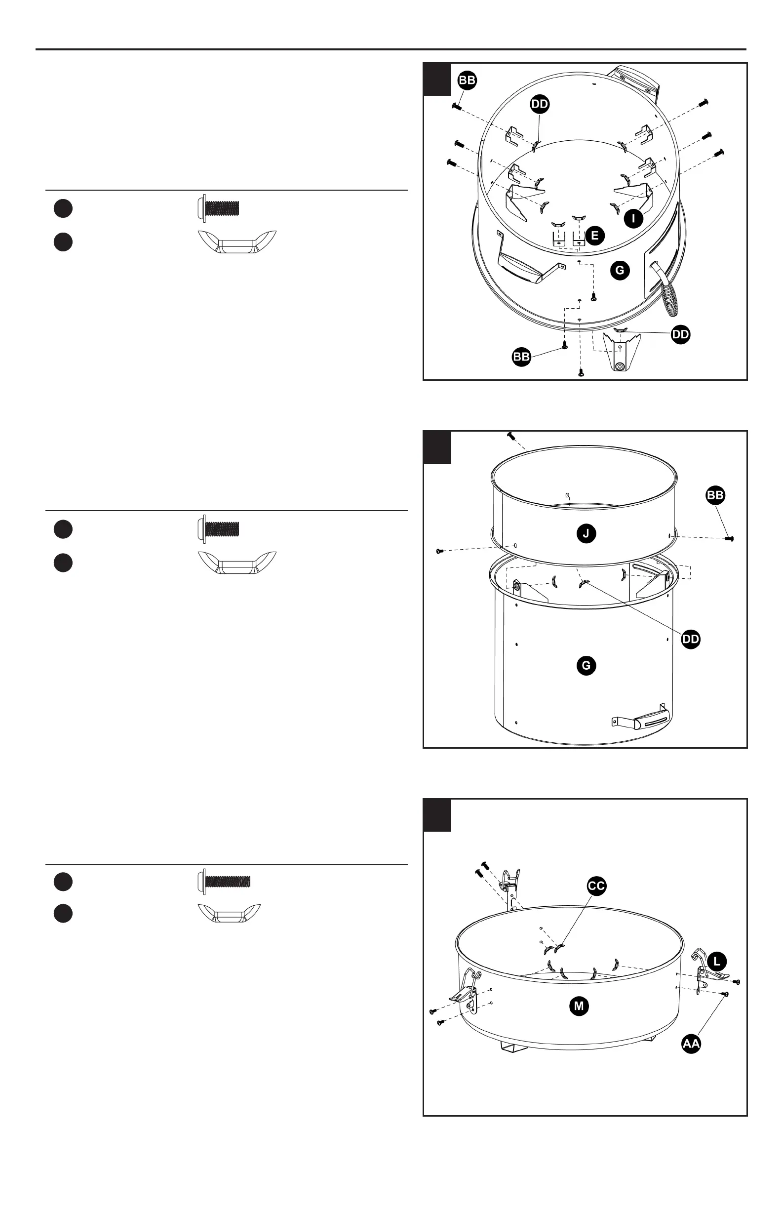 cuerpo del ahumador (G) con seis tornillos (BB) y seis tuercas de