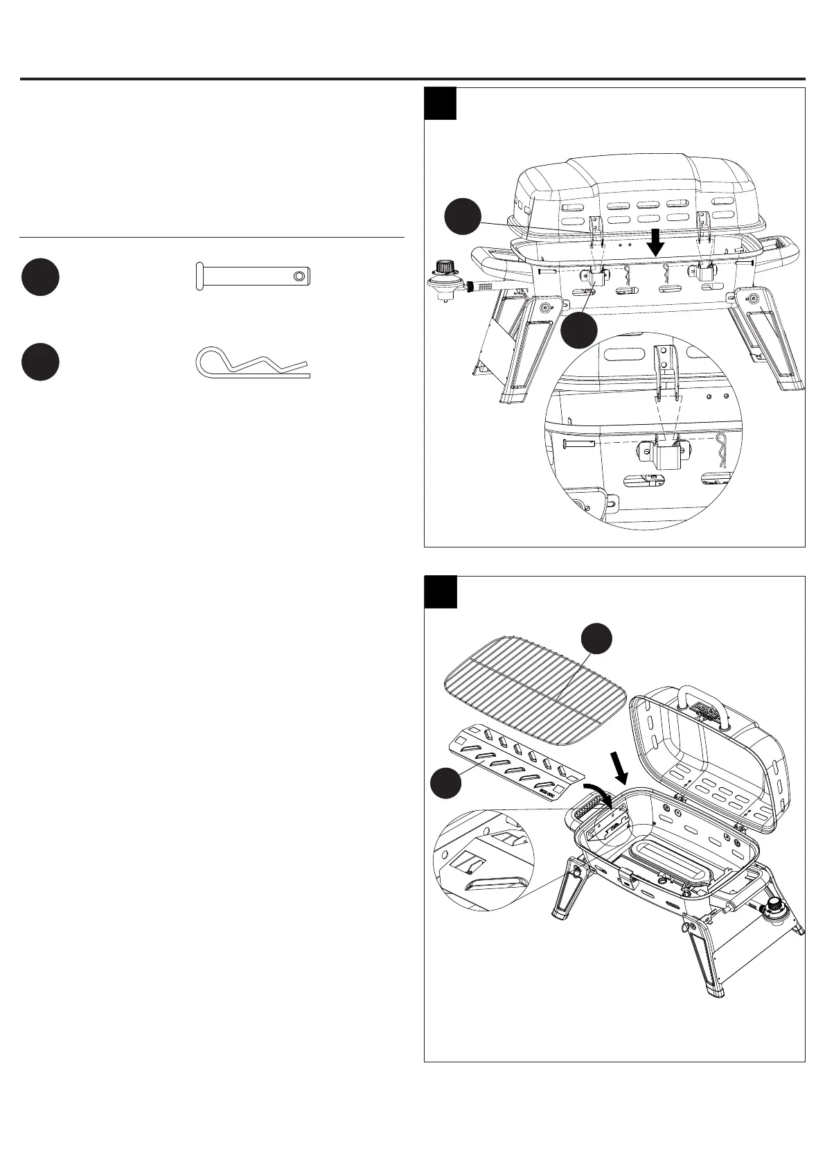 las bisagras inferiores (D). Luego, inserte dos pasadores
