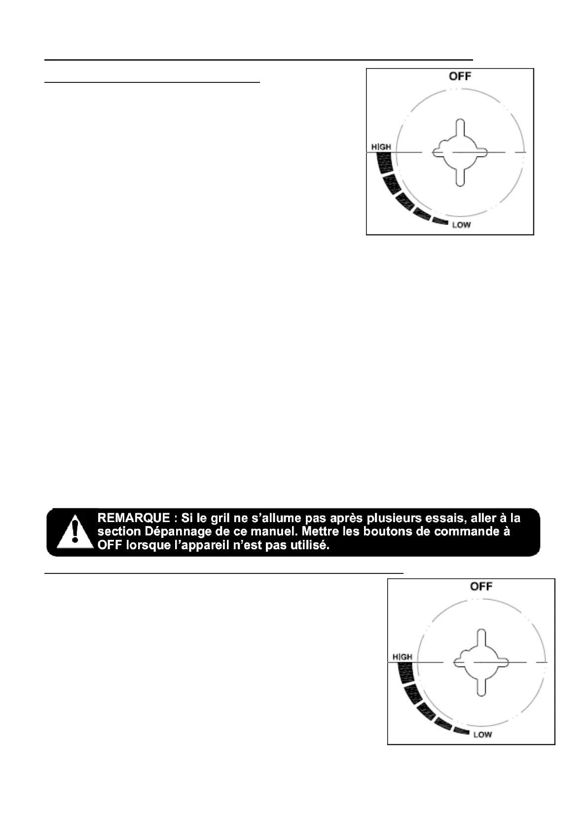 REMARQUE: Si le gril ne s’allume pas après plusieurs essais, aller à la section Dépannage de ce