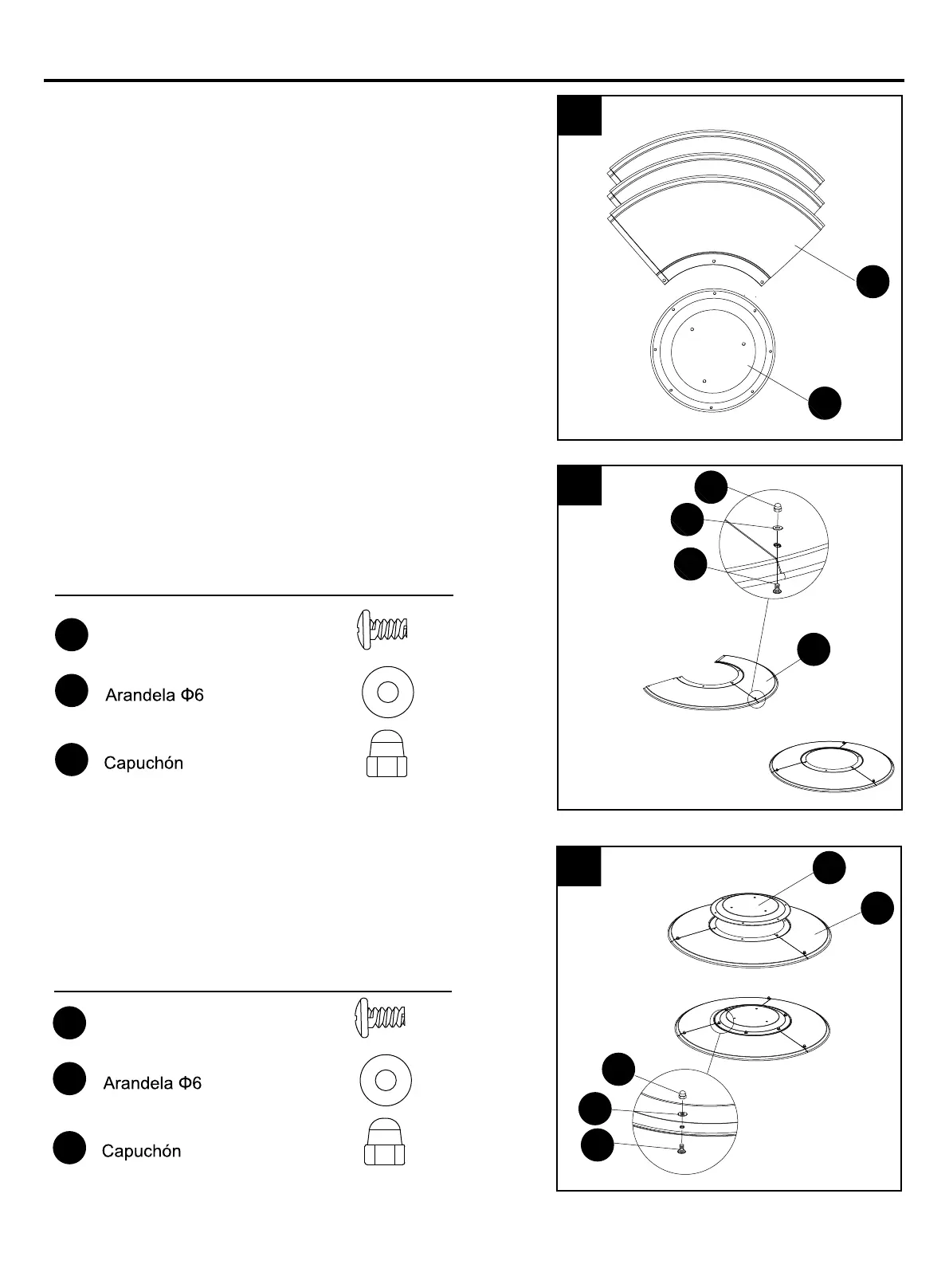 11. Fije la placa del reflector (A) a los paneles del reflector