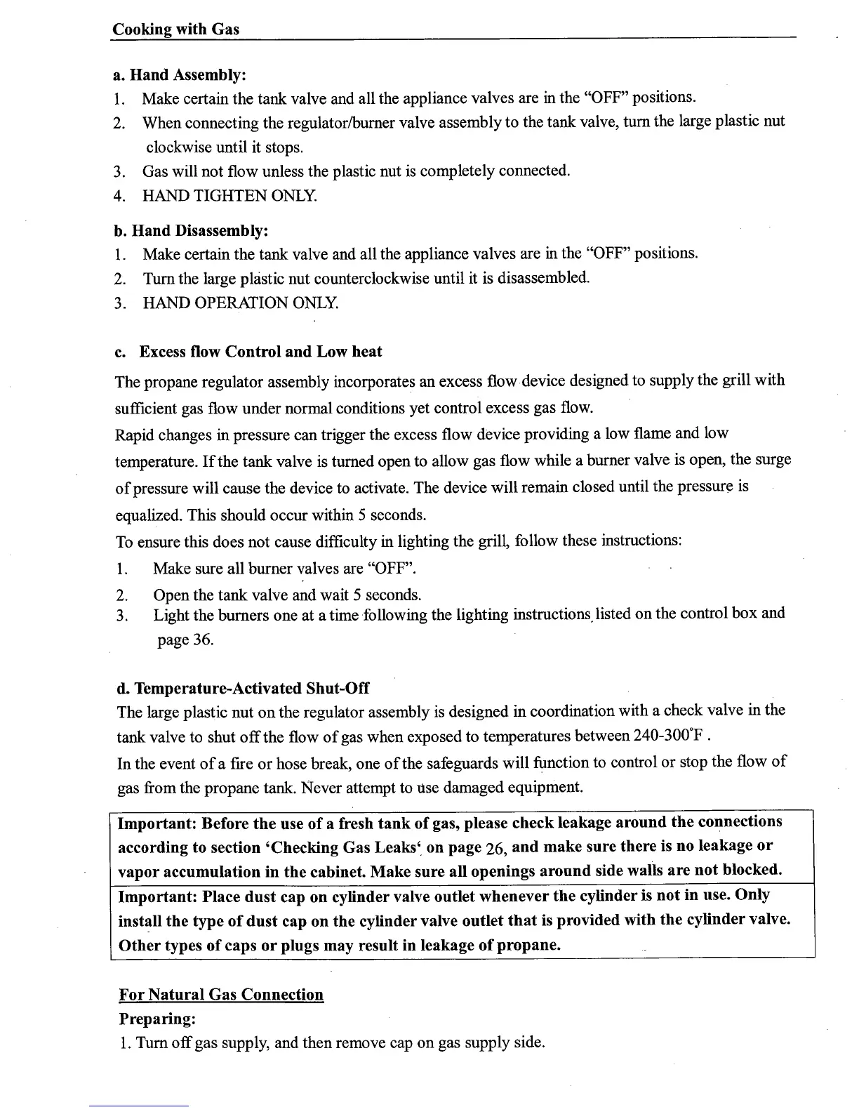 Master Forge LPG - Gas Connection;Disconnection Procedures; Regulator Safety Features; Natural Gas Connection Preparation