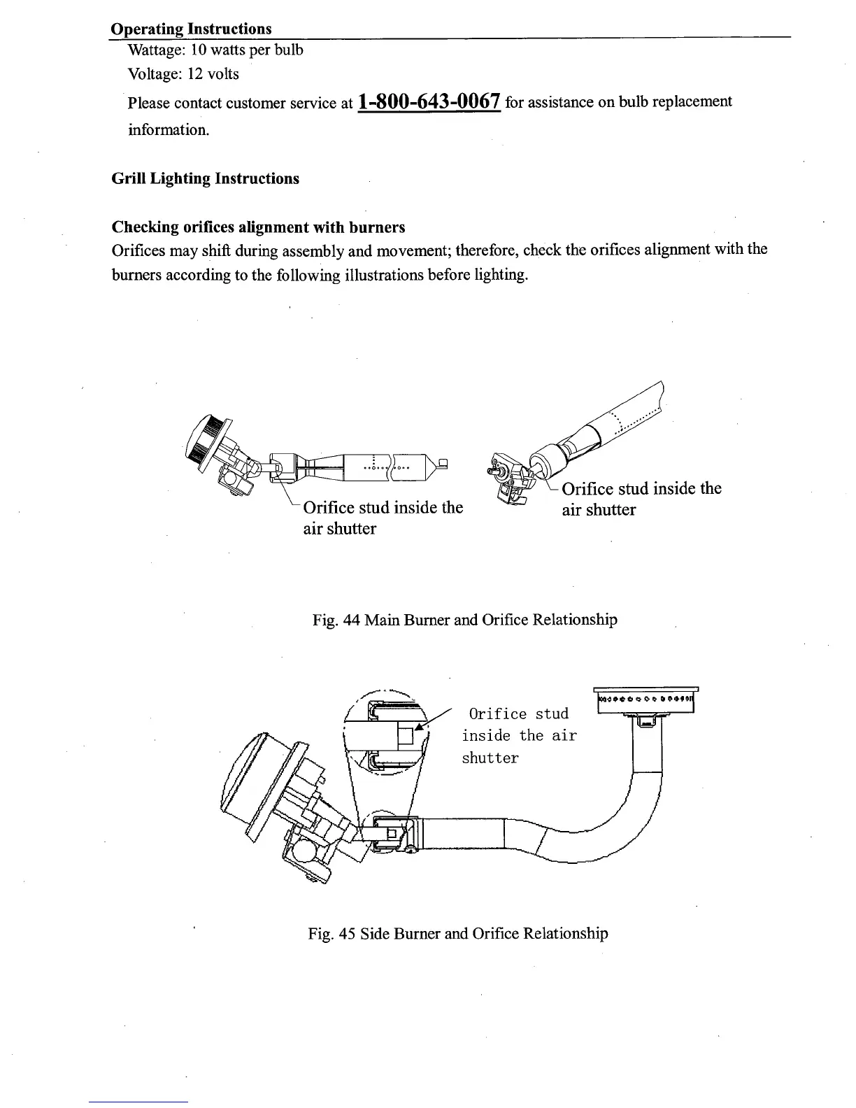 Master Forge LPG - Grill Lighting Procedures; Burner Orifice Alignment Check