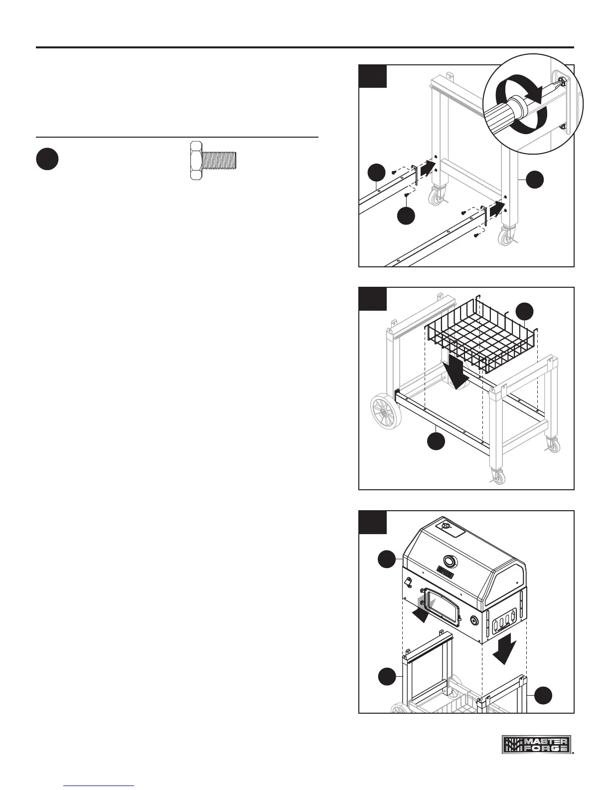 5. Attach storage basket (O) to cart braces (L).