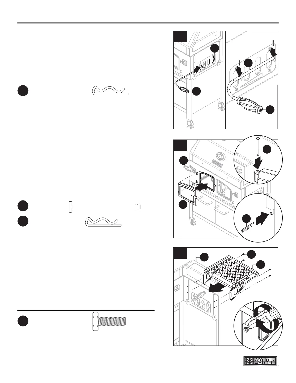 17. Attach charcoal access door – left (F) to lid and