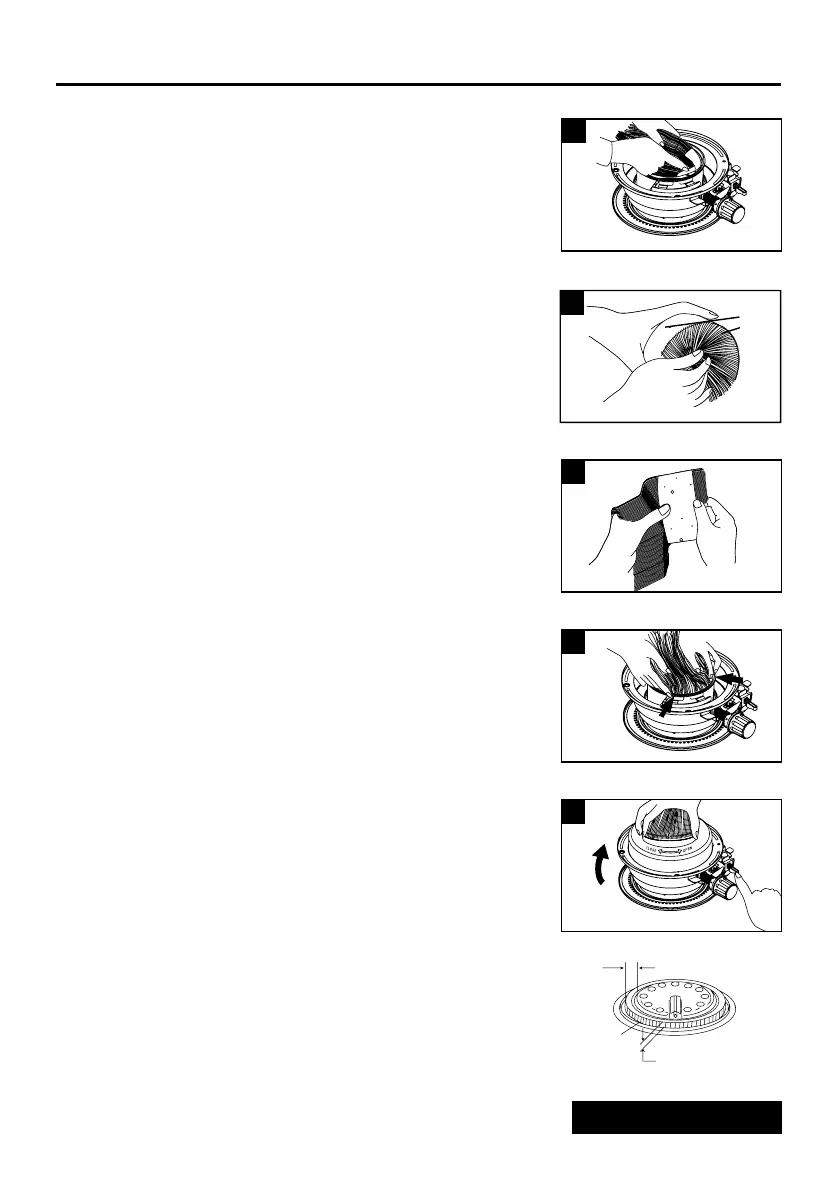 de la mecha) hacia el centro, lejos de las ranuras inclinadas