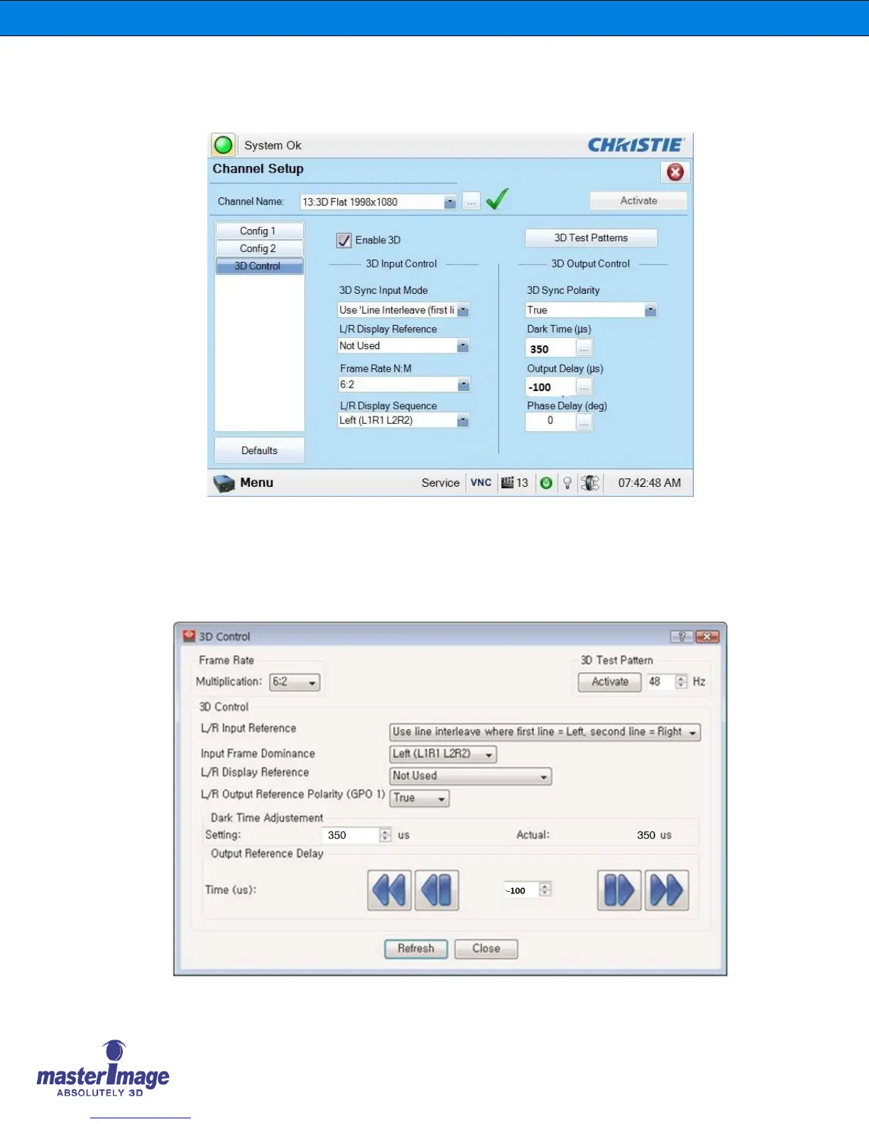 Master Image HORIZON3D - Christie Series II Playback Settings; Barco Series II Playback Settings