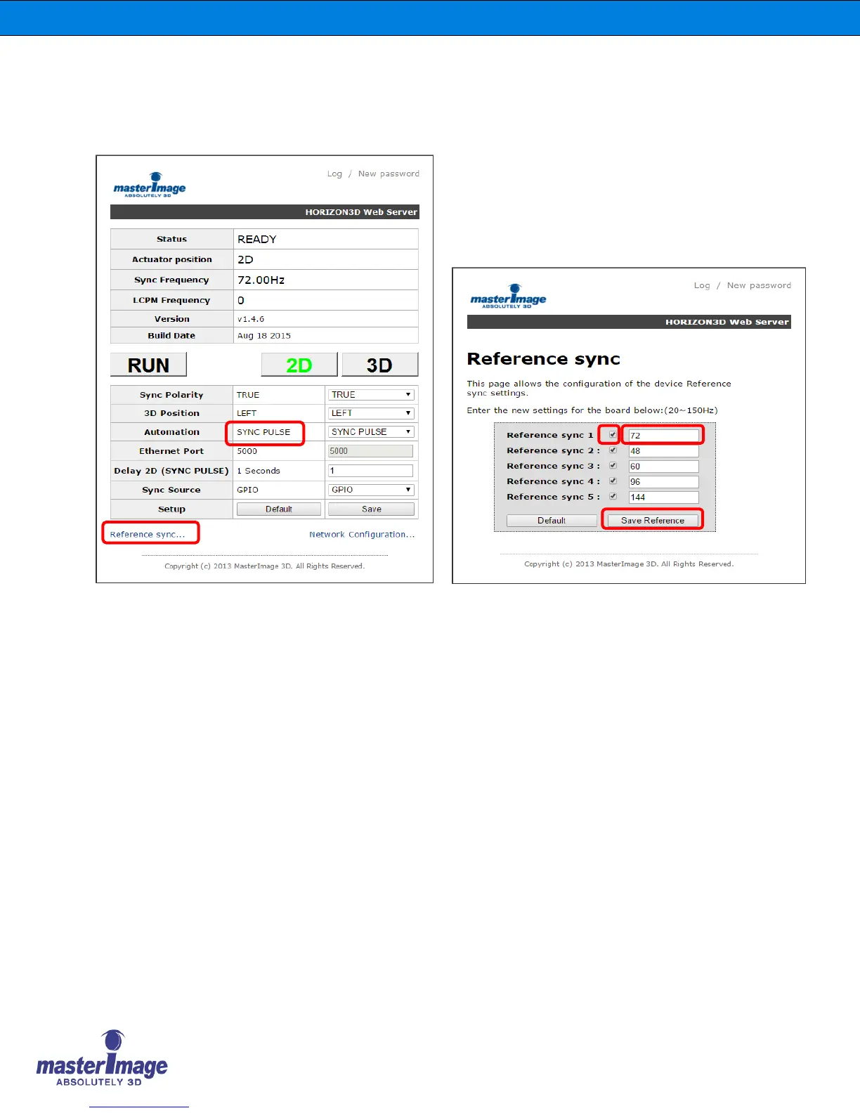 Once the Automation Source has been set to Sync Pulse click [Reference Sync] in the