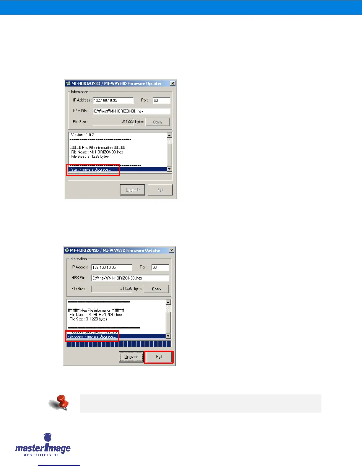 8. You will see the “Success Firmware Upgrade” message in the utility after the progress bar