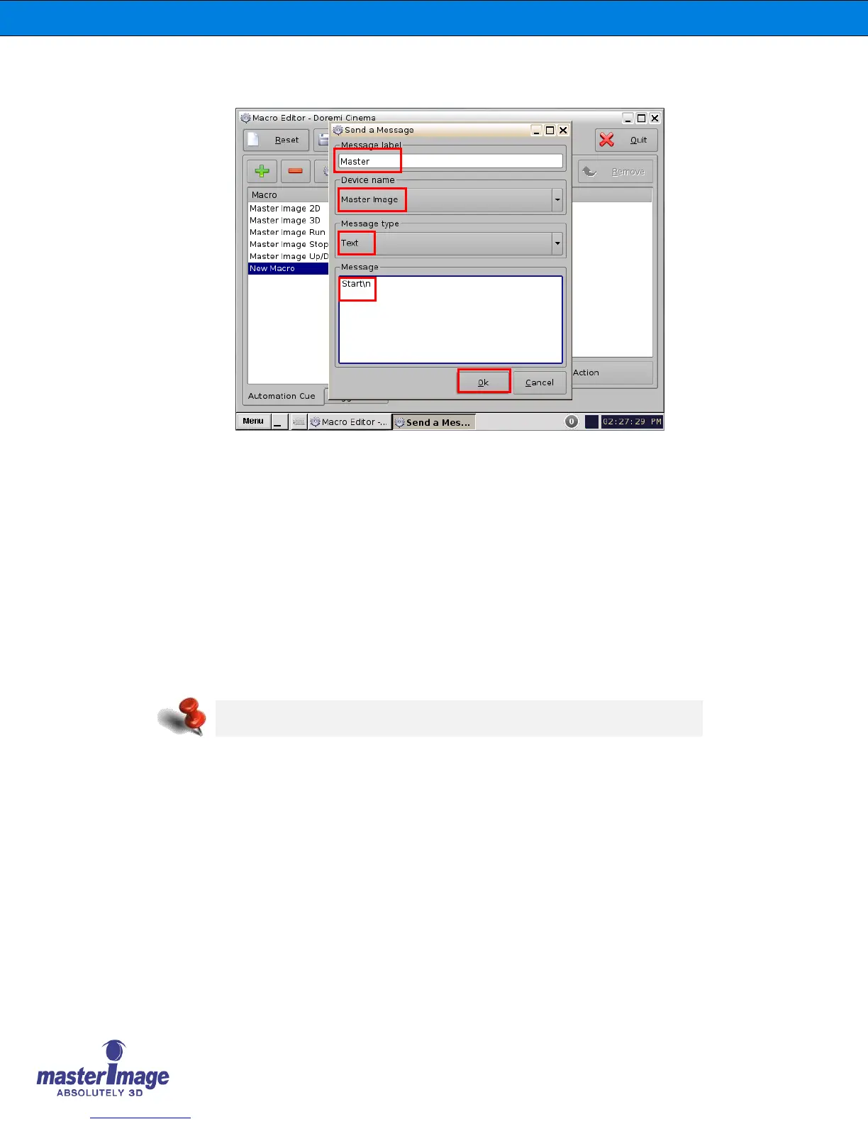 and type in the Message label of MasterImage Start. Ensure the Message type is
