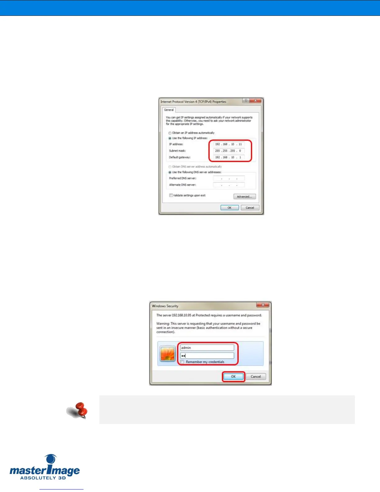 Connect your PC to the MI-WAVE3D with an Ethernet cable and configure your network