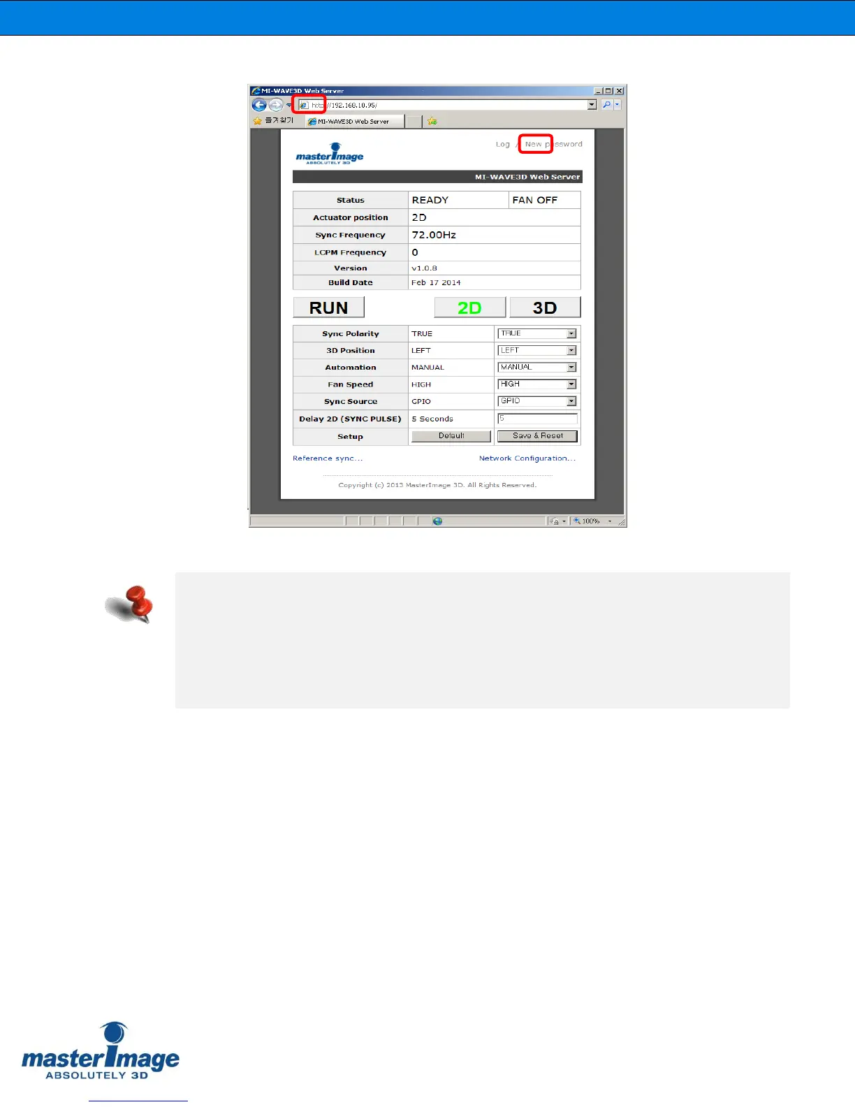 Click the [New Password] link in the upper right corner of the MI-WAVE3D Web Server