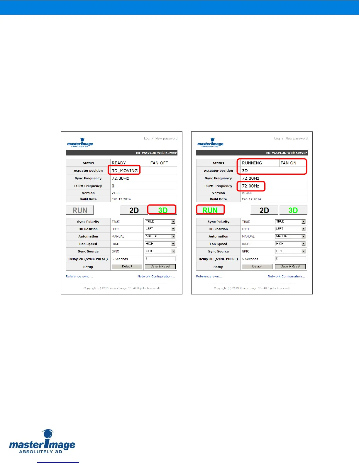 Whilst the actuator is transitioning to the 3D position ‘3D_Moving’ will be displayed, when