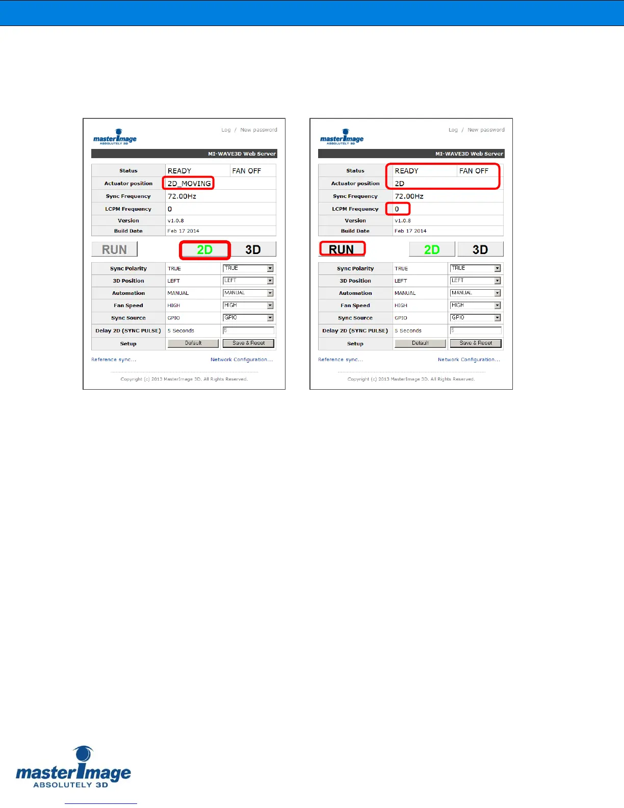 Whilst the actuator is transitioning to the 2D position ‘2D_Moving’ will be displayed, when
