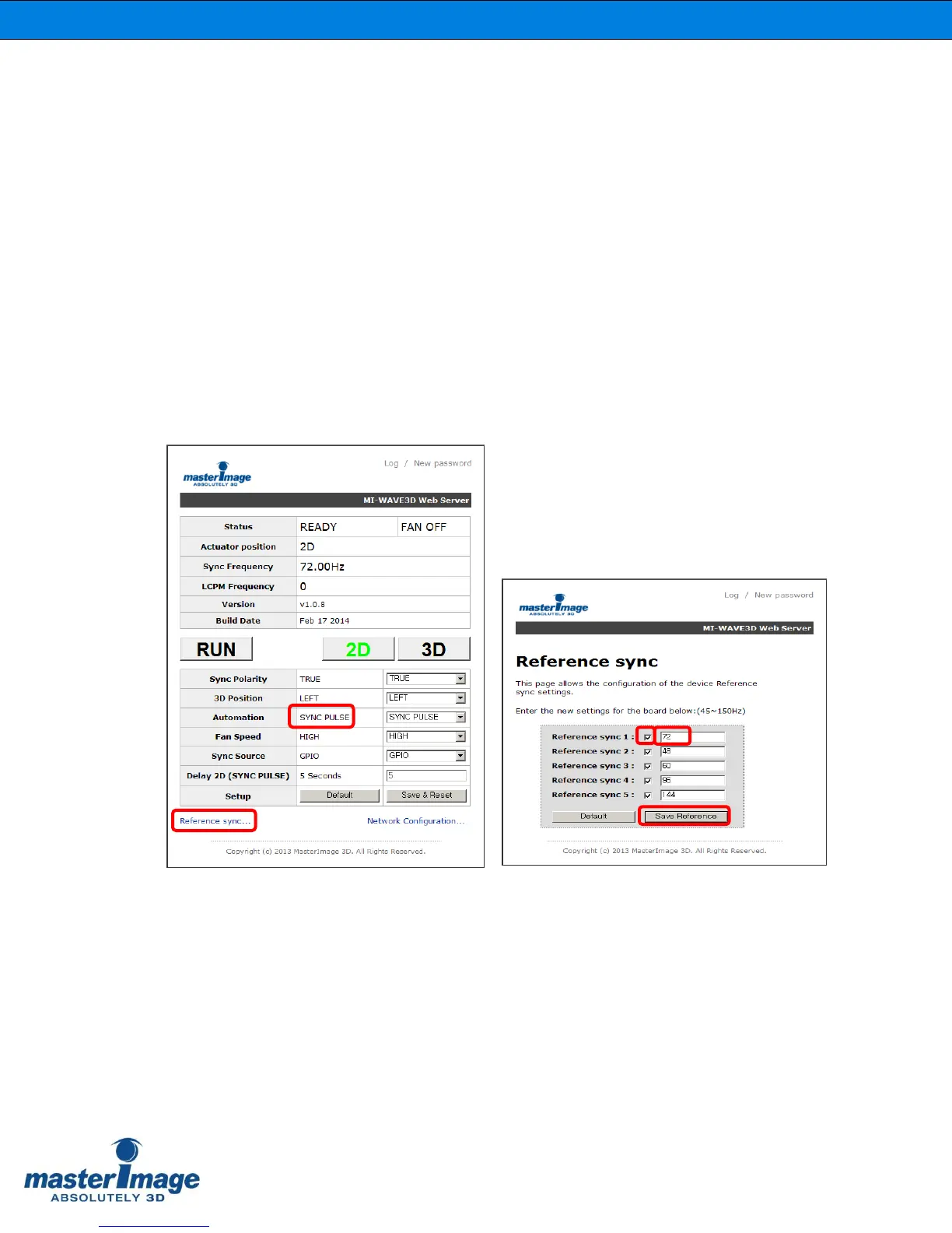 Once the Automation Source has been set to Sync Pulse click [Reference Sync] in the