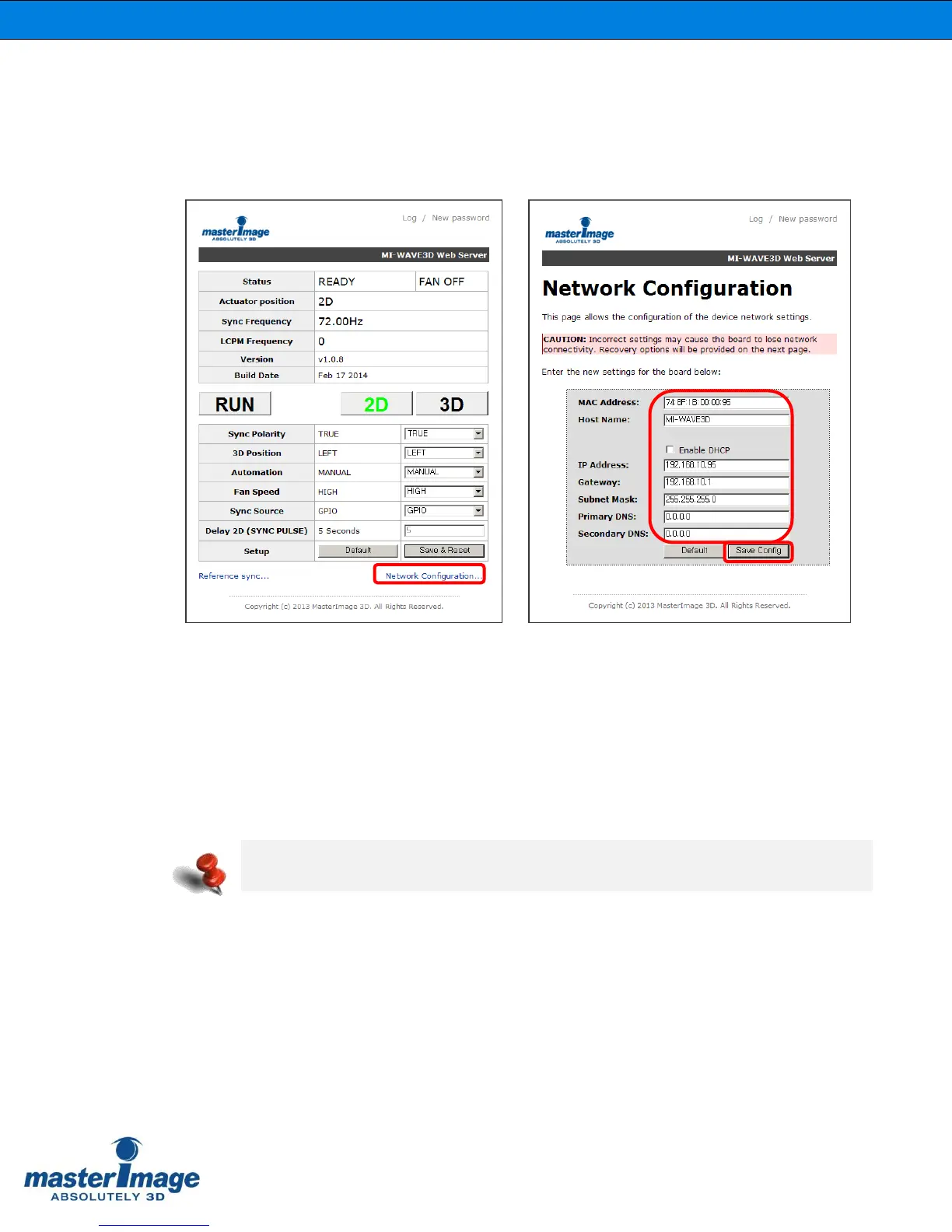 Configure the network settings of the MI-WAVE3D to operate on your network via