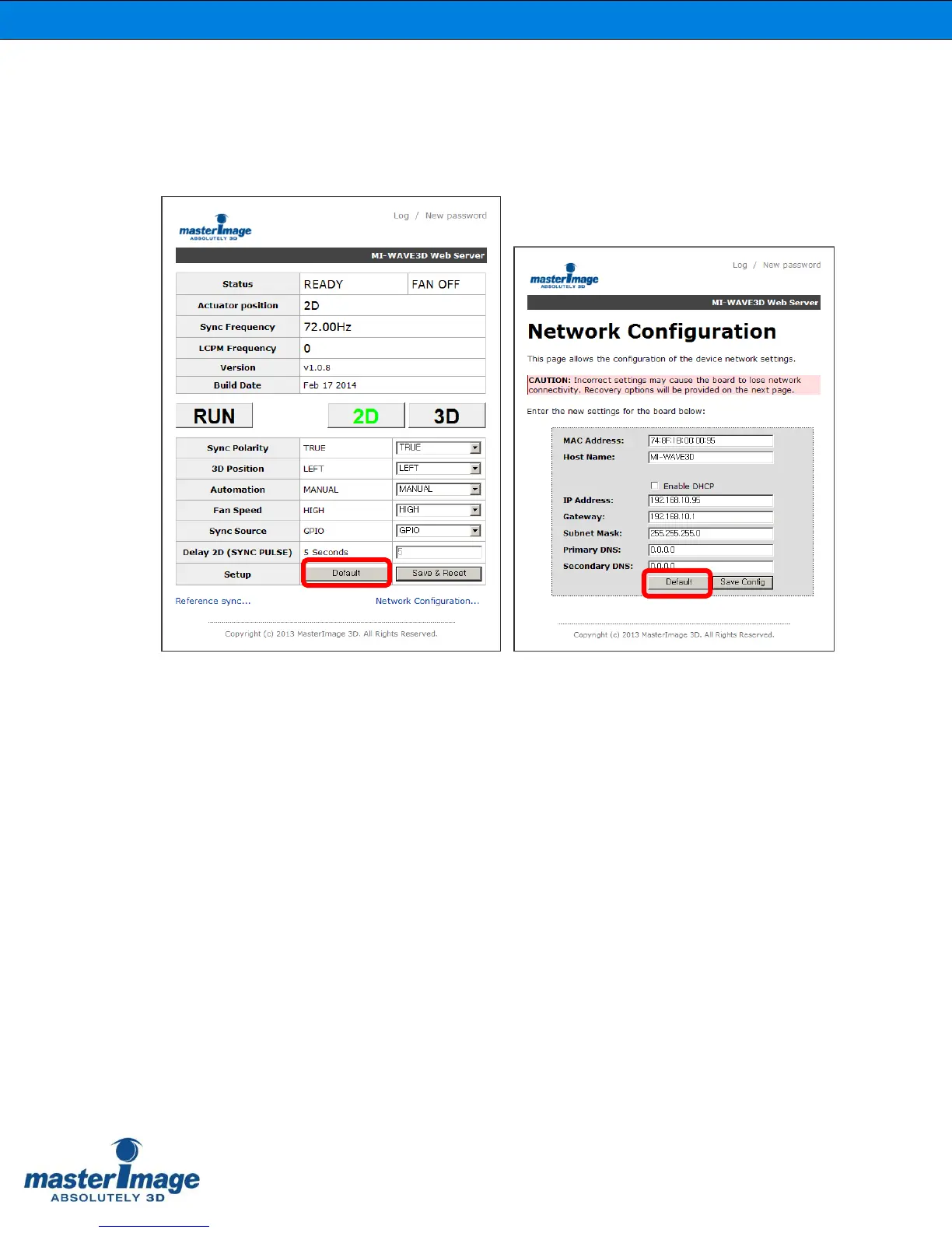 Master Image MI-WAVE3D - Factory Default via Monitor Application