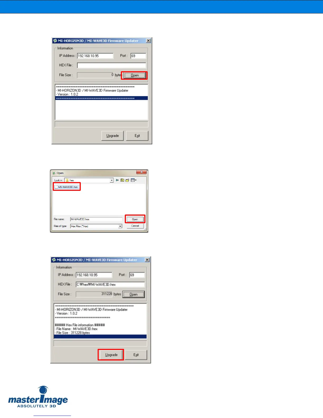 4. Click the [Open] button to select the firmware (.hex) file saved to your PC.