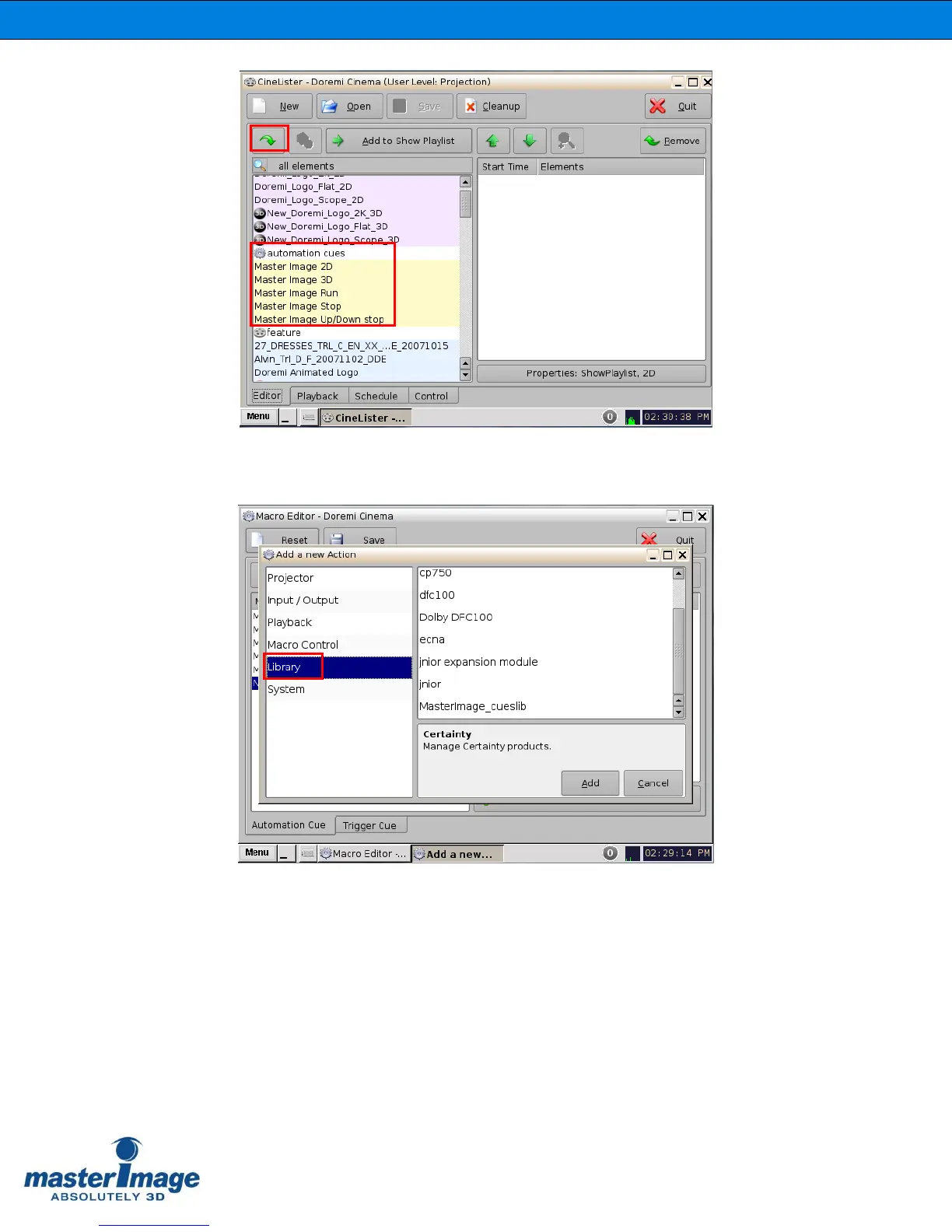 In future versions of Doremi software updates, the MasterImage macros will be