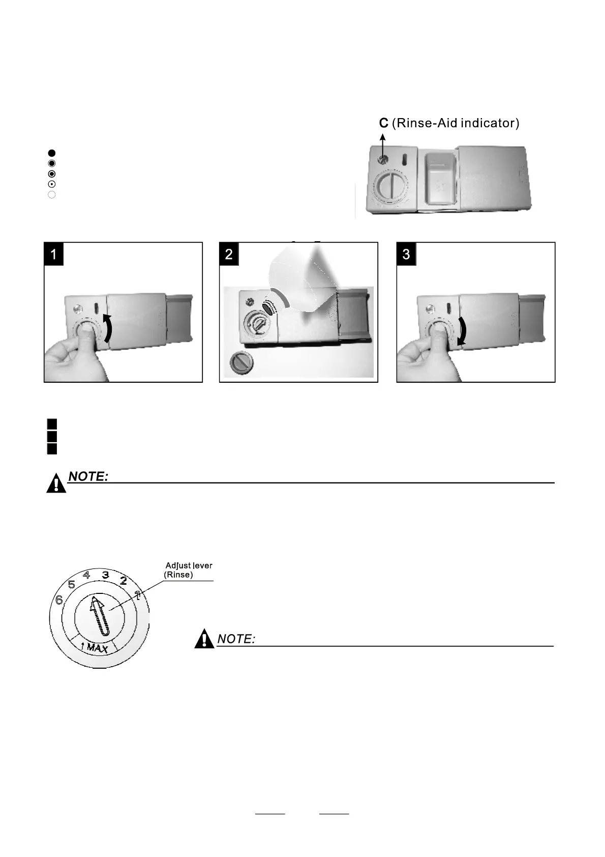 oftheopticallevelindicator"C"locatednexttothecap.Whentherinse-aidcontainerisfull,theindicator