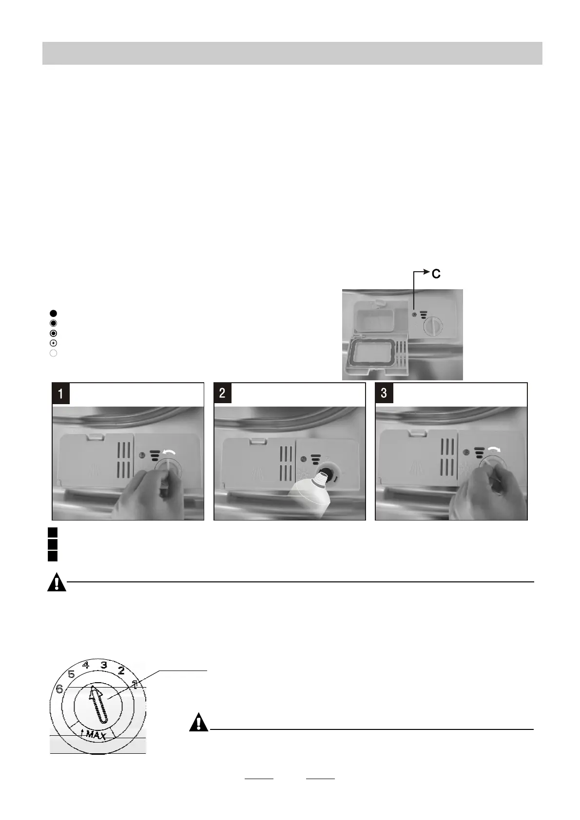 formazione di schiuma durante il lavaggio successivo. Non dimenticare di riposizionare il tappo prima di