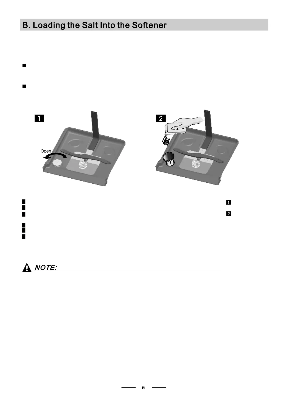 1.Thesaltcontainermustonlyberefilledwhenthesaltwarninglightinthecontrolpanelcomeson.