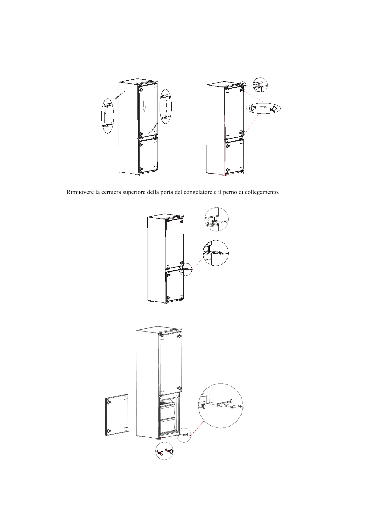7) Rimuovere la porta del congelatore, la cerniera inferiore e i coperchi dei fori.