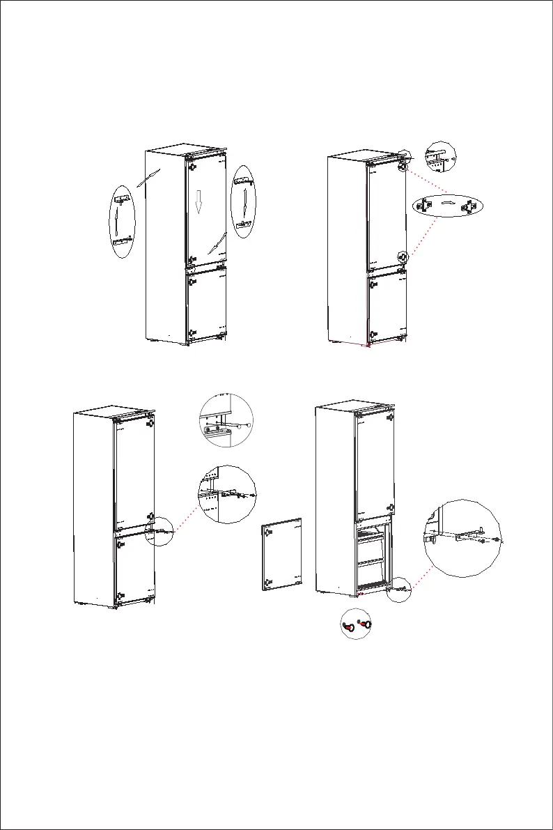 7) Remove the freezer door, the bottom hinge and the hole caps.