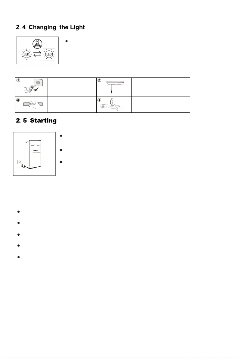Before putting any fresh or frozen foods, the refrigerator shall have run for 2-3