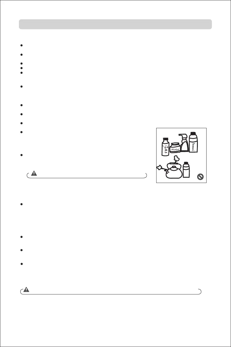 banana oil, etc.), boiling water, acid or alkaline items, which may