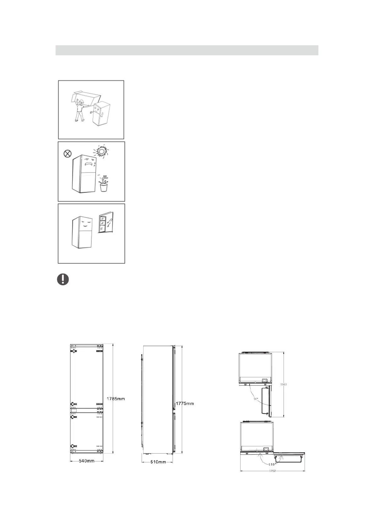 Dimensioni del frigorifero e requisiti delle dimensioni del mobile.
