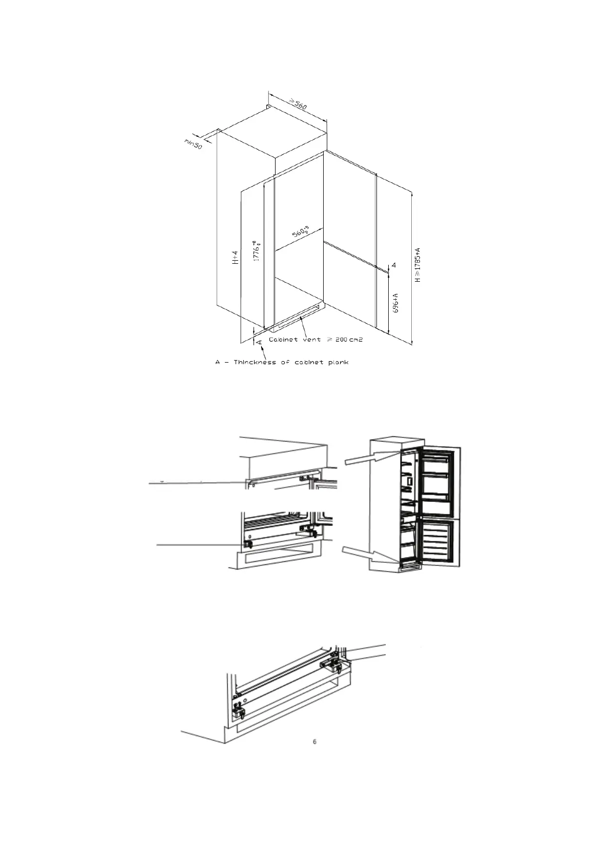 Spingere il frigorifero nel mobile e regolarlo per assicurarsi che il bordo del deflettore superiore