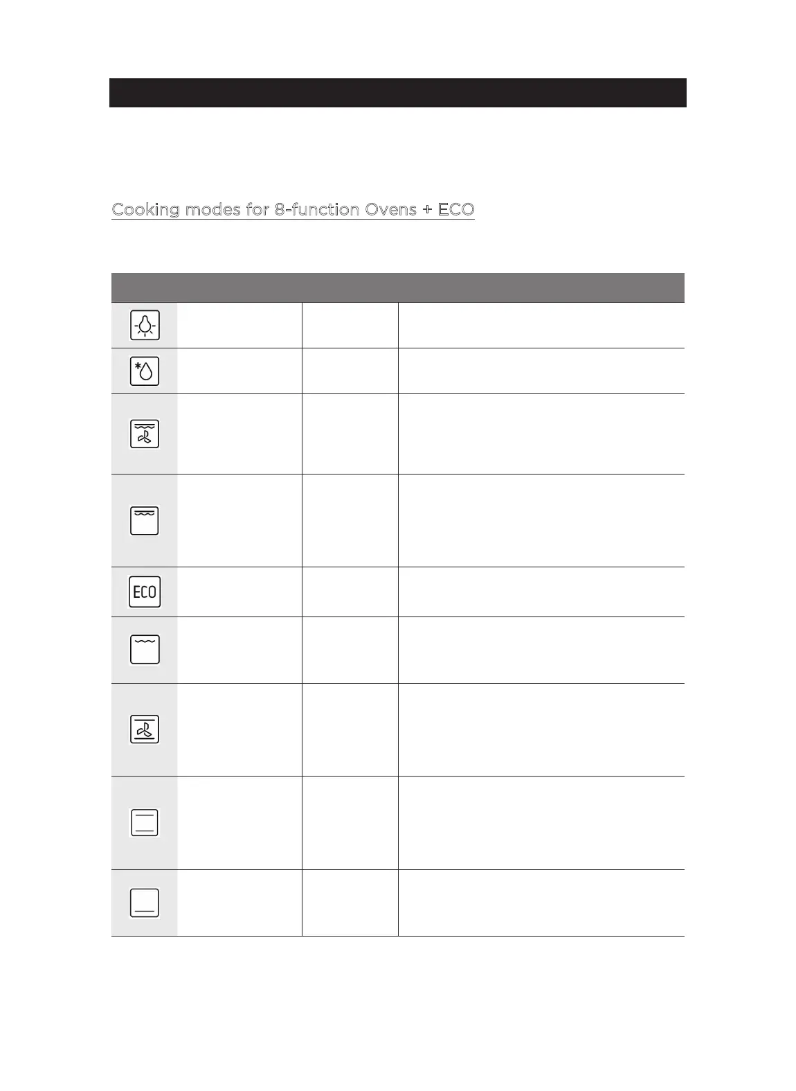 Cooking modes for 8-function Ovens + ECO